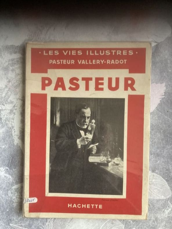 1822 VALLERY-RADOT René. Pasteur 1822 - 1895 (la couverture porte en plus {une heure de lecture}). Paris, Fischbacher, 1922; in-8°, broché de 66pp.; illustrations hors texte; couverture jaune imprimée en noir. On a joint des coupures de presse à la gloire de Pasteur à l'occasion de Centenaire de sa naissance et le n° 144441 du journal “ Le Petit Comtois“ du 28 décembre 1922 , pour le Centenaire de Pasteur. / Le Vivant Souvenir de Pasteur en Franche-comté. Plaquette illustrée de 18 photographies et d'un carte touristique “ Le Circuit Pasteur“. On a joint une copie dactylographie de l'acte de naissance de Louis Pasteur ( 3 exemplaires de 1page 1/2 in-4°), des coupures de presse,1 lettre autographe signée de G. Ventard professeur-président de la Société des Amis de la Maison Natale de Pasteur à Dole, du 2 aout 1934 de 2 pages in-4°. Il donne le programme de ses causeries.