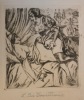 S.d. [Berlin ? 1925 ?] Dimensions des cuivres : 8,5 x 8,5 cm environ. Dimension de la feuille : 19 x 13,5 cm environ. Feuilles contrecollées (marge haute) sur support passe-partout artisanal (amateur). Chaque gravure porte un titre en allemand au crayon avec un numéro. Les voici : 1. Die Entflührung (l'enlèvement) 2. Der Spielmann (le ménestrel) 3. Narr und Nonne (le fou et la nonne) 4. Pagendienst (le Page) 5. Die Courtisane (la courtisane) Nous n'avons pu trouver que très peu d'informations sur cet artiste berlinois. Nous avons noté d'autres suites de gravures érotiques, publiées à la même époque. Ses gravures ne devaient être tirées qu'à très petit nombre si l'on se réfère à la rareté des épreuves actuellement sur le marché. TRÈS RARE SUITE DE 5 EAUX-FORTES ÉROTIQUES PAR ERNST GERHARD.
