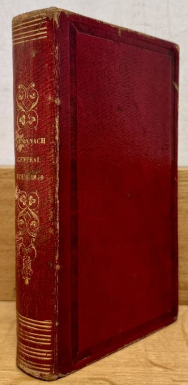 Bordeaux Lafargue 1849 1 vol. relié in-12, veau cerise, dos lisse orné de fleurons et filets dorés, large filet à froid en encadrement sur les plats, coupes filetées, tranches mouchetées, 626 pp. (coiffes et dos légèrement frottés au niveau du mors inférieur, sinon agréable reliure de l'époque). Almanach augmenté de la nouvelle constitution de la République française.