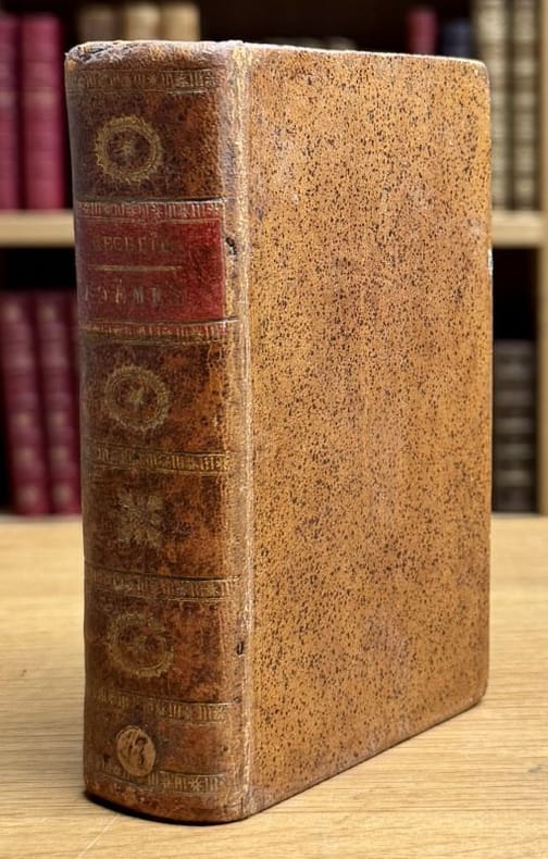 Paris sans nom ; Au grand Buffon ; Au bureau de l'Ami des enfans 1787 1 vol. relié fort vol. in-12, pleine basane mouchetée havane, dos lisse orné de fleurons et roulettes dorés, pièce de titre rouge. Recueil factice réunissant Le Temple de Gnide de Montesquieu (sans nom, sans date, 283 pp.), Athénaïde... de Duault (Au grand Buffon, 1807, 196 pp.) et Romances de Berquin (Au bureau de l'ami des enfans, 1787, 123 pp.), avec, relié en tête, Adonis, la Captivité de saint Malc et le Quinquina de La Fontaine (sans nom, sans date, p. 216-282). Bon exemplaire.