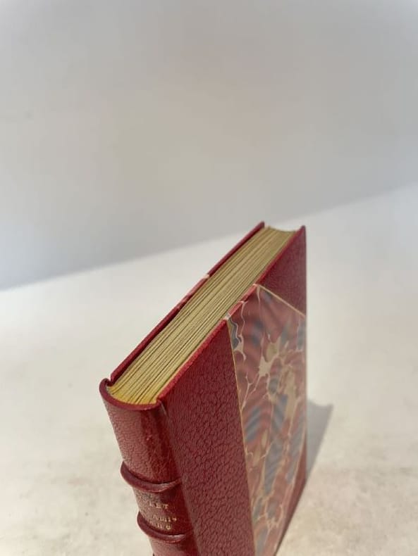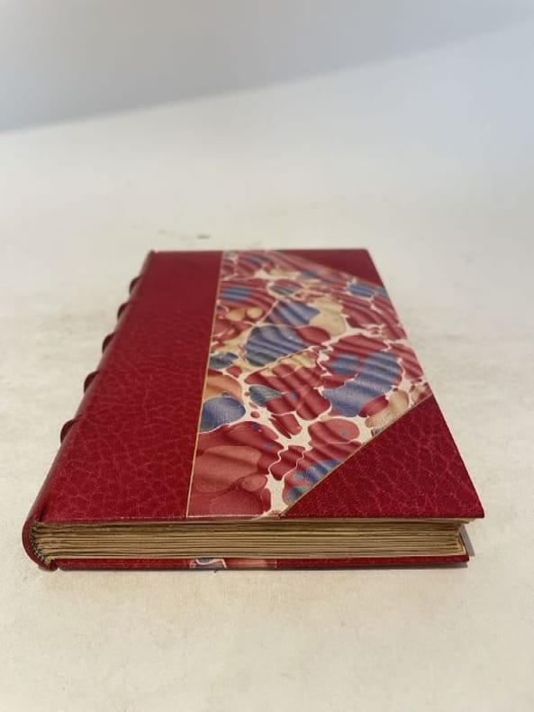Paris Mercure de France 1905 1 vol. relié in-12, demi-maroquin à gros grain cerise à coins bordé d'un filet doré, dos à nerfs, tête dorée, couvertures et dos conservés, étui bordé (Tchékéroul), 242 pp. Édition originale sans grand papier de ce roman, portrait d'une demi-mondaine de la Belle Époque. Exemplaire numéroté du premier mille. Complet de l'extrait du catalogue du Mercure de France (8 pp.). En parfait état dans une fine reliure signée.