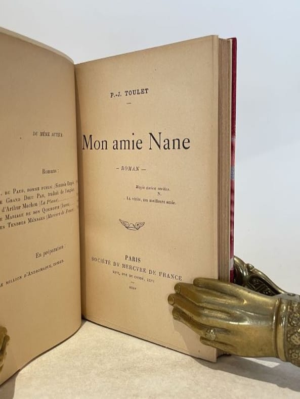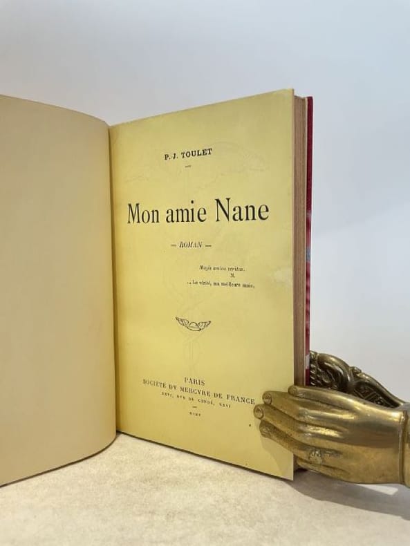 Paris Le Divan 1930 252 pp. In-12. Broché. Etat d' usage. 1 volume. Mon amie Nane est un roman de Paul-Jean Toulet publié à Paris en 1905 et traçant le portrait doux-amer d'une demi-mondaine de la Belle Époque. Le roman parut en 1905 mais ses chapitres avaient déjà été publiés séparément en 1900, 1902, 1903 et 1904 dans l'hebdomadaire La Vie parisienne."Mon amie Nane est un roman à la première personne empreint d'érotisme, d'humour et de mélancolie. Un narrateur y fait le récit de ses relations avec Nane (de nom de guerre Hannaïs Dunois), depuis leur rencontre jusqu'à leur séparation".