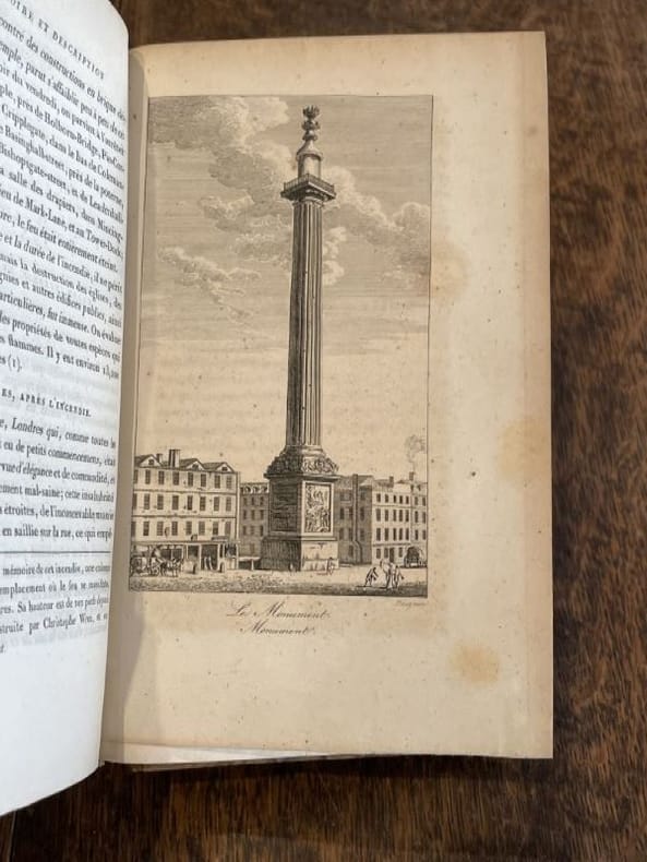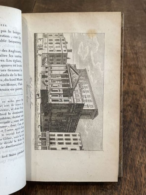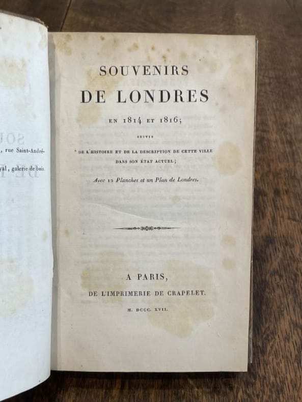 Paris, Crapelet, 1817. 1817 1 vol. in-8° (210 x 133 mm.) de : VI -281 (1) pp. ; [1] ff. ; 1 plan dépliant de Londres gravé par Moisy et de 12 planches hors-texte. Cartonnage de papier à la colle bleu d'époque, étiquette de titrage éditeur au dos, non rogné, emboitage moderne de protection.