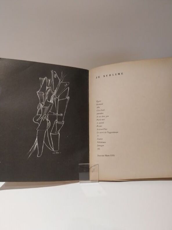 Edition originale illustrée de 4 compositions hors-texte d'Yves Tanguy reproduites en phototypie. Tirage à 1030 exemplaires numérotés. Un des 800 sur papier d'édition, sous couverture jaune imprimée en rouge. Très bon 0