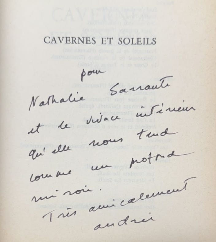 Paris Flammarion, coll. "Poésie" 1979 1 vol. broché in-8, broché, 169 pp. Édition originale. Exemplaire du service de presse enrichi d'un envoi autographe signé de l'autrice : "pour Nathalie Sarraute et le vivace intérieur qu'elle nous tend comme un profond miroir. Très amicalement".