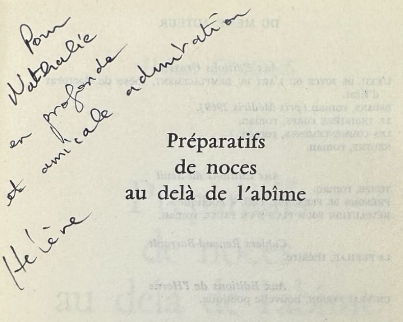 Paris Des Femmes 1978 1 vol. broché in-12, broché, jaquette, 183 pp. Édition originale avec un envoi autographe signé de l'écrivaine : "Pour Nathalie [Sarraute], en profonde et amicale admiration, Hélène".