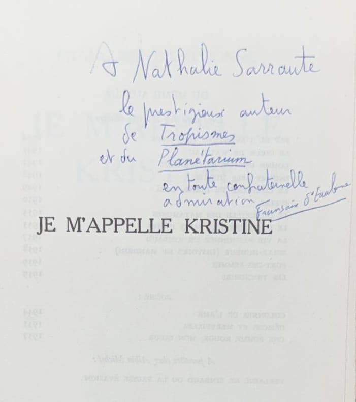 Paris Albin Michel 1959 1 vol. broché in-12, broché, couverture illustrée, 284 pp. Edition originale de cette autobiographie fictive de Christine de Suède, dédiée à Simone de Beauvoir. Un des 130 exemplaires sur alfa Cellunaf réservés aux bibliophiles des sélections Lardanchet, seul grand papier, celui-ci non justifié, offert avec ce bel envoi autographe signé de l'écrivaine : "A Nathalie Sarraute, le prestigieux auteur de Tropismes et du Planétarium / en toute confraternelle admiration". Femme de lettres cofondatrice du MLF, Françoise d'Eaubonne (1920-2005) a théorisé les liens entre féminise et écologie et créé le vocable politique et philosophique d' "écoféminisme".
