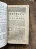 1753 -in-12 plein-veau 1 volume, reliure plein veau havane moucheté in-douze (binding full calfskin in-12)(15 x 9 cm), dos long (spine without raised bands), décoré "or" (gilt decoration), titre frappé "or", pièce de titre sur fond bordeaux avec un double filet "or" en encadrement, entre-nerfs à fleuron (floweret) "or" dans un encadrement de deux filets "or" avec rinceaux "or" aux angles, roulette "or" en pied, léger manque de cuir à la coiffe de tête, filet "or" sur les coupes avec léger manque de dorure, toutes tranches lisses rouges, coiffe supérieure légèrement accidentée, sans illustration (no illustration) excepté une vignette "angelot" en bas du titre gravé sur bois en noir, LXXII + 348 pages, 1753 (sans lieu ni nom d'Editeur),