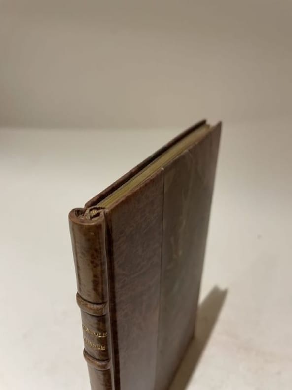 Paris Calmann-Lévy 1903 1 vol. relié plaquette in-12, bradel de veau marbré aubergine à coins, dos à 4 nerfs, tête dorée, non rogné, couvertures et dos conservés, 44 pp. Édition originale. Un des 50 exemplaires numérotés sur vergé de Hollande, second papier après 10 Japon. Ex-libris gravé Adrien Lachenal, homme politique suisse. Très bel exemplaire, en parfaite condition.