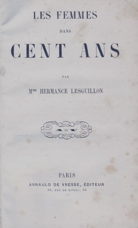 Paris Arnauld de Vresse 1859 1 vol. relié in-12, pleine percaline chagrinée verte, filets et encadrements à froid au dos et sur les plats, tranches mouchetées, XI + 326 pp. Édition originale de cet essai féministe en réponse au livre de Michelet, L'Amour, paru l'année précédente, qui représente « la Femme » comme un être toujours malade et nécessairement dépendant. L'autrice évoque implicitement le divorce comme une solution souhaitable et dénonce la profonde immoralité des hommes. Poétesse et romancière prolifique depuis 1833, Hermance Lesguillon, née Jeanne Sandrin (1810-1882), prit parti pour la République en 1848 et devint membre de la Société de la Voix des Femmes. Dans cette étonnante uchronie, des femmes se réunissent en communauté pour mettre en oeuvre les théories que Proudhon avait émises à l’intention du peuple : en s’associant pour acquérir des connaissances et faire fructifier leur travail, elles vont s’approprier le capital et conquérir le pouvoir ! Quelques rousseurs, sinon bon exemplaire de cet ouvrage très rare.