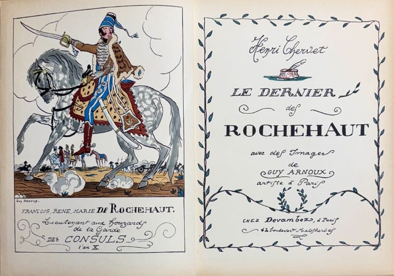 Paris Devambez (vers 1930) 1930 in 4 1 volume cartonnage crème de l'éditeur, plat supérieur orné d'un décor estampé polychrome (hussard à cheval), 239 pages. Nombreuses illustrations dans le texte, et 13 planches hors-texte (dont le frontispice) en couleurs par Guy Arnoux, en beaux coloris réalisés au pochoir. Très bel exemplaire ( Photographies sur demande / We can send pictures of this book on simple request )
