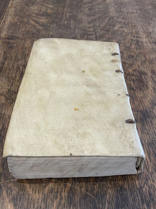 Parisiis apud Ambrosium Girault 1544 1 vol. relié in-8, parchemin ivoire, dos lisse, (16) + CCLXX feuillets, marque de l'éditeur sur la page de titre. Constitue la seconde partie des sermons de ce théologien du début du XIIIe siècle, père ermite de Saint-Augustin, édités par Agostino Maria Perachino et agrémentés d'un index, après son "In evangelia quadragesimalia utilissimæ conciones" paru la même année chez Ambroise Girault, à l'enseigne du Pélican. Deux des trois cordons de reliure sont cassés, sinon bel exemplaire sans mouillures.