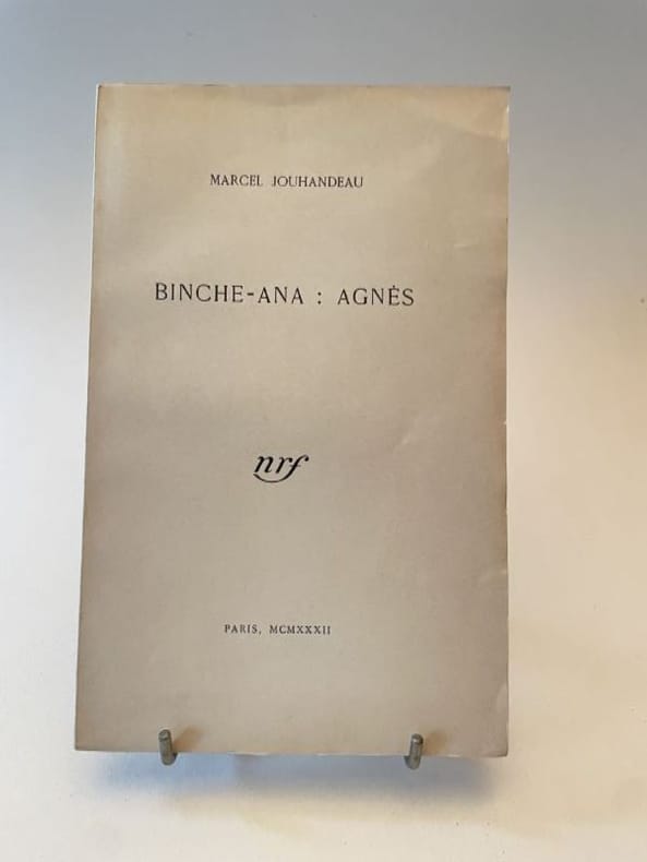 Paris Nouvelle Revue Française 1932 1 vol. broché in-8, broché, sous couverture imprimée, 77 pp. Tiré à part sur papier Lafuma à petit nombre de ce récit paru dans six livraisons de la Nouvelle Revue Française, de février à septembre 1932, puis remanié pour une parution en volume sous le titre Binche-ana (1933). En bon état.