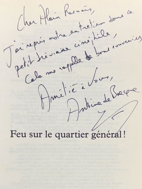 Paris Petite bibliothèque des Cahiers du cinéma 2008 1 vol. broché in-12, broché, couverture illustrée en couleurs, 283 pp. Édition originale de ce recueil d'articles et d'entretiens sur le cinéma. Exemplaire enrichi d'un bel envoi autographe signé de l'auteur : "Cher Alain Resnais, j'ai repris notre entretien dans ce petit bréviaire cinéphile, cela me rappelle de bons souvenirs". Exemplaire provenant de la bibliothèque d'Alain Resnais.