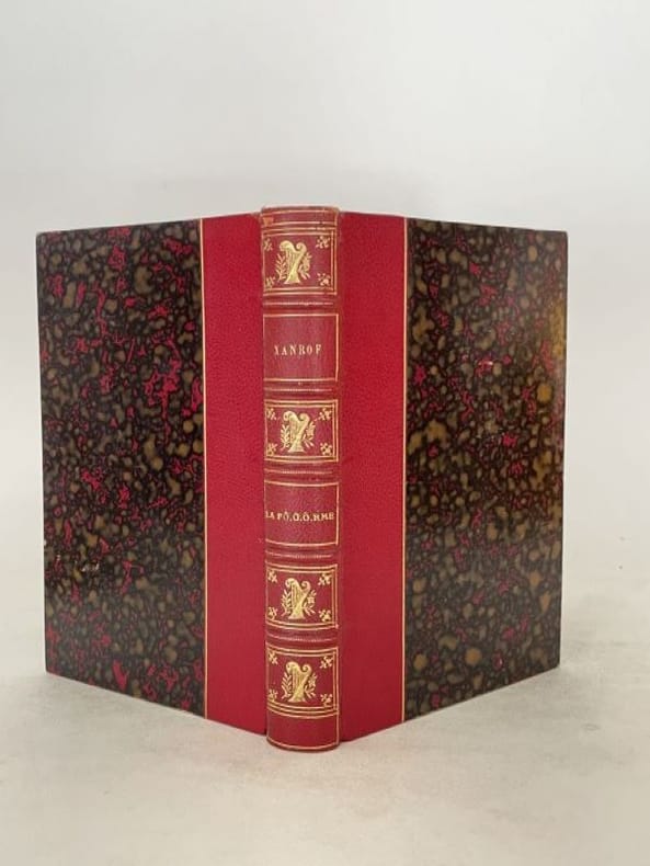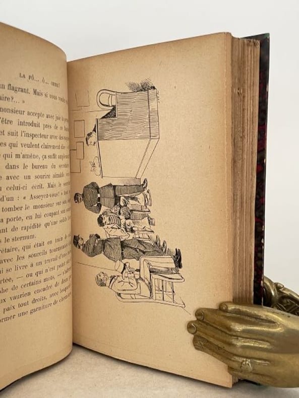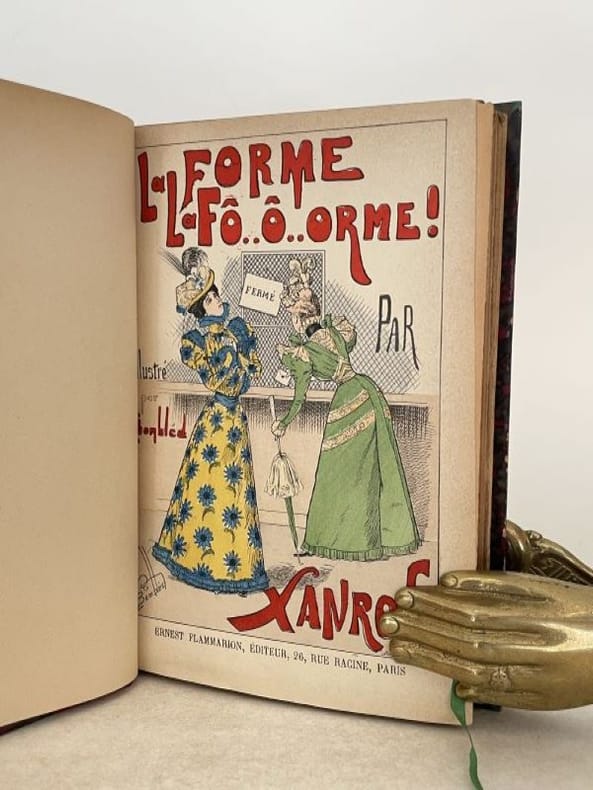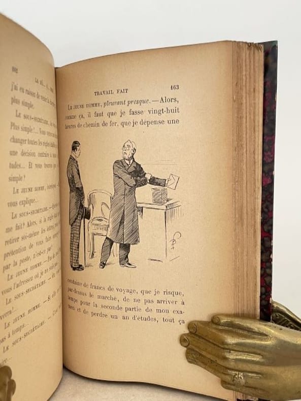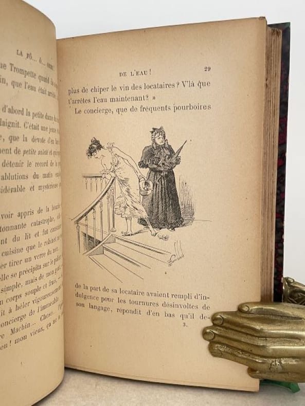 Paris Flammarion, s.d. [1897] 1 vol. Relié in-12, demi-chagrin rouge, dos à nerfs orné de petits fers dorés (harpes), tête dorée, non rogné, couvertures illustrées conservées, 243 pp. Edition originale illustrée de dessins par Bombléd. Très jolie reliure de l'époque.