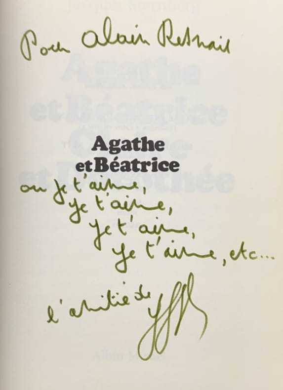 Paris Albin Michel 1979 1 vol. broché in-8, broché, 312 pp. Édition originale enrichie d'un envoi autographe signé au cinéaste Alain Resnais. Joint : un article de presse (3 mai 1979) sur l'ouvrage, intitulé "Jacques Sternberg, le malchanceux". Exemplaire provenant de la bibliothèque d'Alain Resnais.