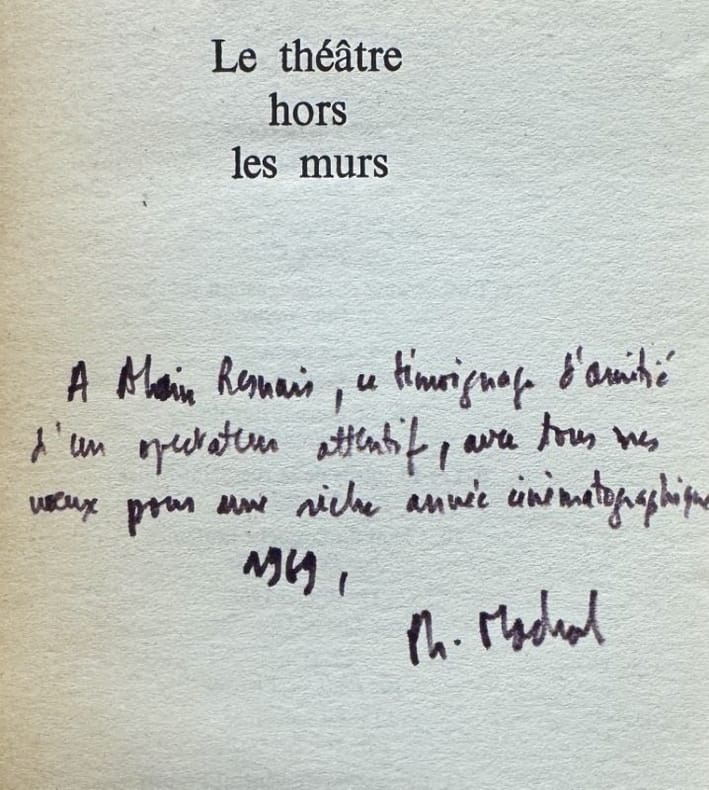 Paris Editions du Sueil, coll. "théâtre" 1969 1 vol. broché in-12, broché, 249 pp. Édition originale de cette étude présentant des entretiens avec Guy Rétoré (Théâtre de l'Est parisien), Gabriel Garran (Théâtre de la Commune d'Aubervilliers), Pierre Debauche (Théâtre des Amandiers de Nanterre), Raymond Gerbal (Théâtre Roman Rolland de Villejuif), José Valverde (Théâtre Gérard-Philippe de Saint-Denis), Patrice Chéreau (Théâtre de Sartrouville). Exemplaire enrichi d'un envoi autographe signé au cinéaste Alain Resnais, "ce témoignage d'amitié d'un spectateur attentif"... Exemplaire provenant de la bibliothèque d'Alain Resnais.