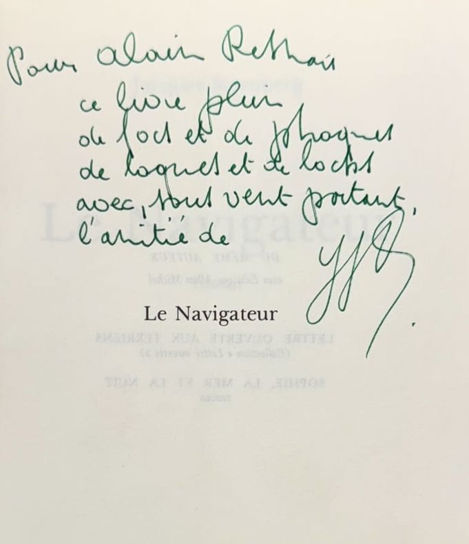 Paris Albin Michel 1977 1 vol. broché in-8, broché, couverture illustrée à rabats, 249 pp. Édition originale sans grand papier enrichie d'un envoi autographe signé au cinéaste Alain Resnais : "ce livre plein de focs et de phoques, de loques et de locks avec, tous vent portant, l'amitié de Jacques Sternberg". En bonne condition. Exemplaire provenant de la bibliothèque d'Alain Resnais.