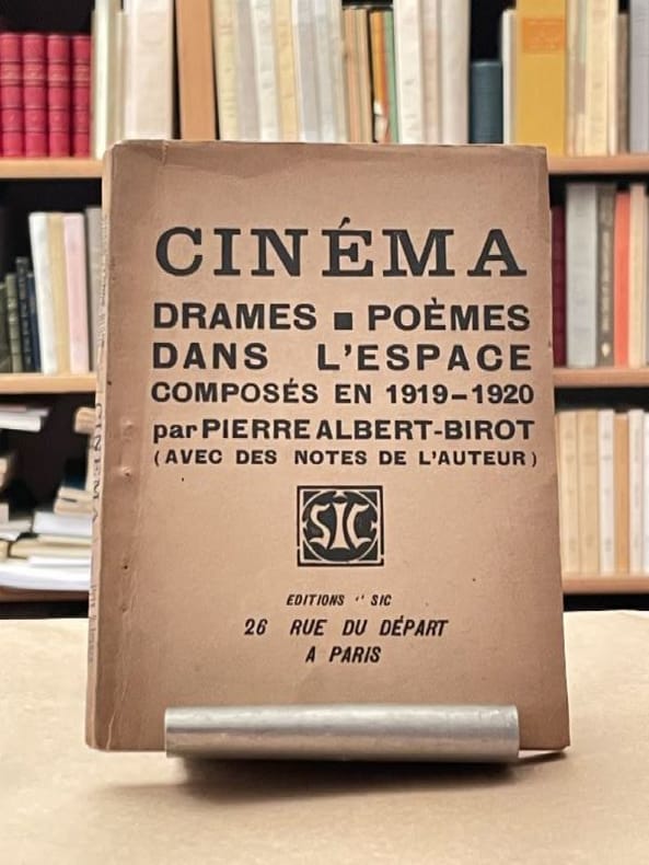 Paris Éditions "SIC" 1920 1 vol. broché in-16, broché, 97 pp. Édition originale de ces scénarios qui n'ont jamais été portés à l'écran. L'ouvrage est imprimé par l'auteur sur sa presse à bras à une centaine d'exemplaires, celui-ci avec envoi autographe signé, daté "Paris 1920", au poète et directeur de La Phalange Jean Royère. Papier un peu jauni avec infime déchirure sans manque, sinon bon exemplaire. Rare.