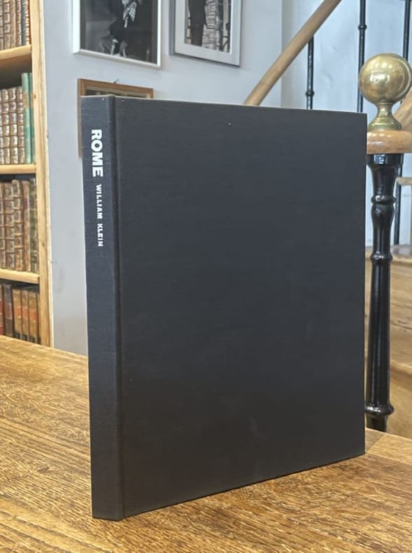 Paris Éditions du Seuil, "Album Petite Planète" 1959 1 vol. relié in-4, cartonnage éditeur noir, jaquette illustrée en couleurs, non paginé. Premier tirage en français de ce célèbre album de 151 photographies reproduites en héliogravure et remarquablement mises en page. Engagé par Fellini comme assistant sur le tournage des Nuits de Cabiria qui prend du retard, William Klein explore la capitale italienne et en dresse un portrait superbe à travers des images d'anonymes pour l'essentiel, classées en cinq chapitres : "Cittadini di Roma", "La Strada", "Città eterna", "Ragazzi" et "Mondo Cattolico". Jaquette légèrement effrangée, sinon bel exemplaire.