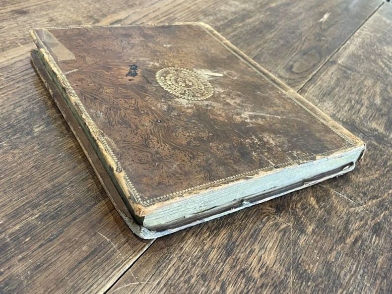 Paris, Baudouin, An VII [1799], in-4, VII-[1]-132-[2] pp, 25 pl, Basane marbrée de l'époque, dos à nerfs et fleuronné, pièce de prix en maroquin rouge sur le plat supérieur [École impériale gratuite de dessin], Première édition en librairie, après la parution en livraisons dans le Journal de l'École Normale en 1795. 25 planches de figures géométriques dépliantes gravées sur cuivre d'après Girard par Delettre. La géométrie descriptive de Gaspard Monge (1746-1818), prévue à l'origine pour le Génie Militaire, est à la base de tous les dessins de machines et des méthodes graphiques qui conduiront à la construction mécanique. Le mathématicien présenta cette méthode générale dès 1795, dans les cours donnés à l'éphémère École Centrale des Travaux publics - future École Polytechnique - et organisa son enseignement au sein des fugaces Écoles Normales de l'An III : cette nouvelle géométrie, apparue dans le contexte révolutionnaire, n'est pas à proprement parler de son "invention", puisqu'elle réunit un ensemble de méthodes déjà connues et mises en pratique. En revanche, il appartient à Monge de les avoir réunies, systématisées et décrites sous le terme de "géométrie descriptive" et d'en avoir été le promoteur (Sakarovitch). Cet exemplaire comporte l'Abrégé du catalogue des livres de fonds et d'assortiment de J.B.M. Duprat, libraire pour les mathématiques à Paris, quai des Augustins, Vendémiaire an VII. Exemplaire offert en prix par l'École impériale gratuite de dessin l'année 1811 pour le Second prix de géométrie, remporté par Jean-Louis Mathon. Étiquette ex-libris J[oseph] Laissus (1900-1969), directeur-fondateur de l'École technique supérieure du Laboratoire. Frottements, coins et coupes usés, coiffe inférieure arasée. Feuillets un peu brunis, quelques rousseurs. Joël Sakarovitch, "La géométrie descriptive et l'oeuvre de Gaspard Monge". In : Géométrie pratique, édité par Dominique Raynaud, Presses universitaires de Franche-Comté, 2015 [en ligne] DSB IX, 473. Couverture rigide