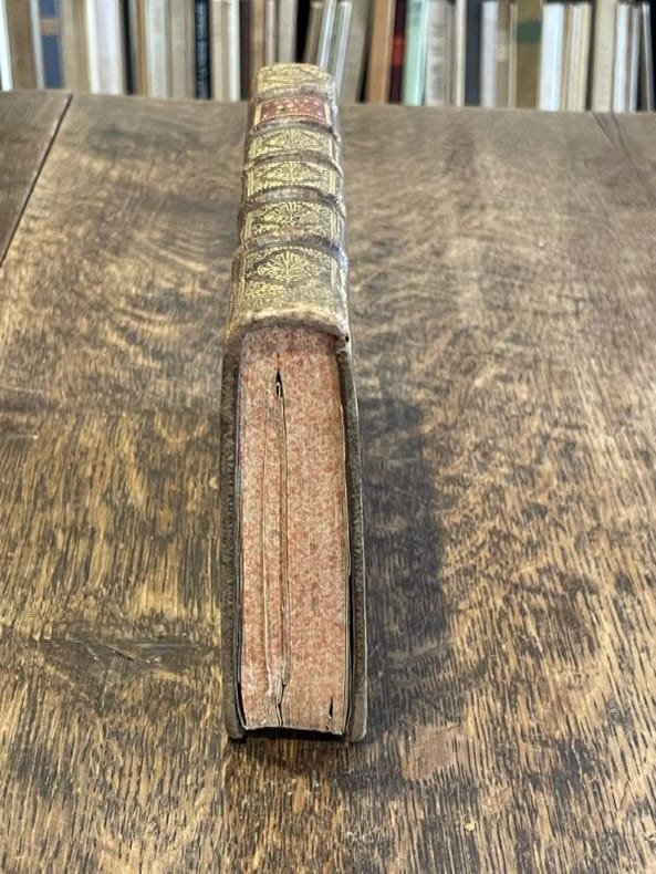 1716 Paris, chez André Cailleau ,1716, Fort in huit , (1) , (2) -215 pp, reliure d'époque en plein veau moucheté, très frotté,coins émoussés, dos à cinq nerfs, pièce de titre en cuir rouge, feuillet débroché (213 à 215 + page de sommaire) mais ouvrage complet et de bonne tenue,