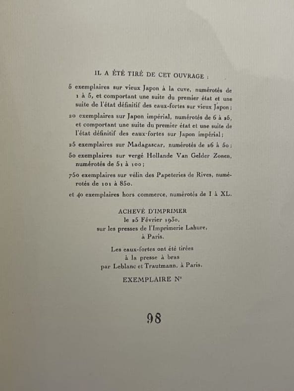 Tirage limité à 900 exemplaires numérotés, celui ci sur velin Omnia. ...................... Photos sur demande ..........................