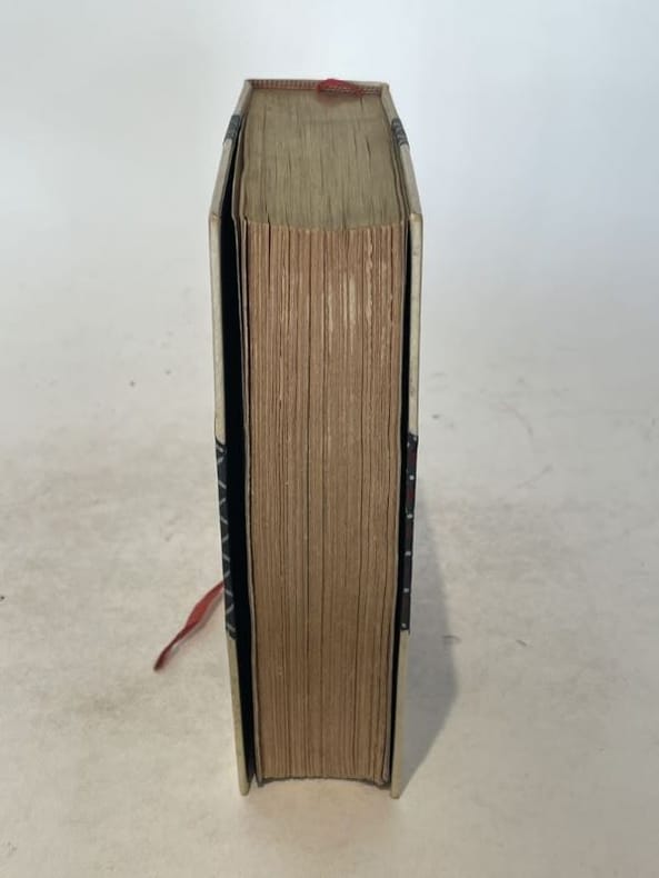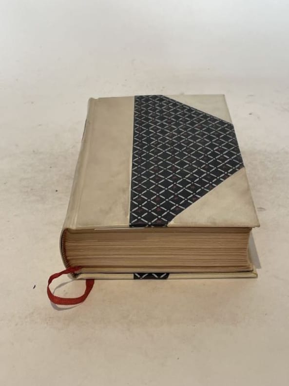 Paris Denoël et Steele 1932 1 vol. relié in-12, bradel demi-vélin crème à coins avec pièce de titre de chagrin grenat au dos, tête dorée, couvertures et dos conservés, 623 pp. Bon exemplaire de l'année de l'originale, sans mention d'édition, sorti des presses de la "Grande Imprimerie de Troyes", avec le catalogue de l'éditeur sur papier vert in-fine. Plaisante reliure non signée (tâche minime au premier contreplat).