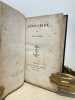 Paris, Imprimerie de Brasseur Ainé, 1808. "8 x 13, 270 pp., bandeaux et culs-de-lampe, reliure plein carton, dos orné de filets dorés, bon état (peu de rousseurs; pied, coiffe et coins émoussés)."