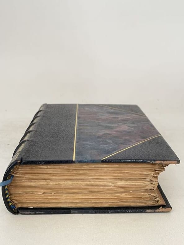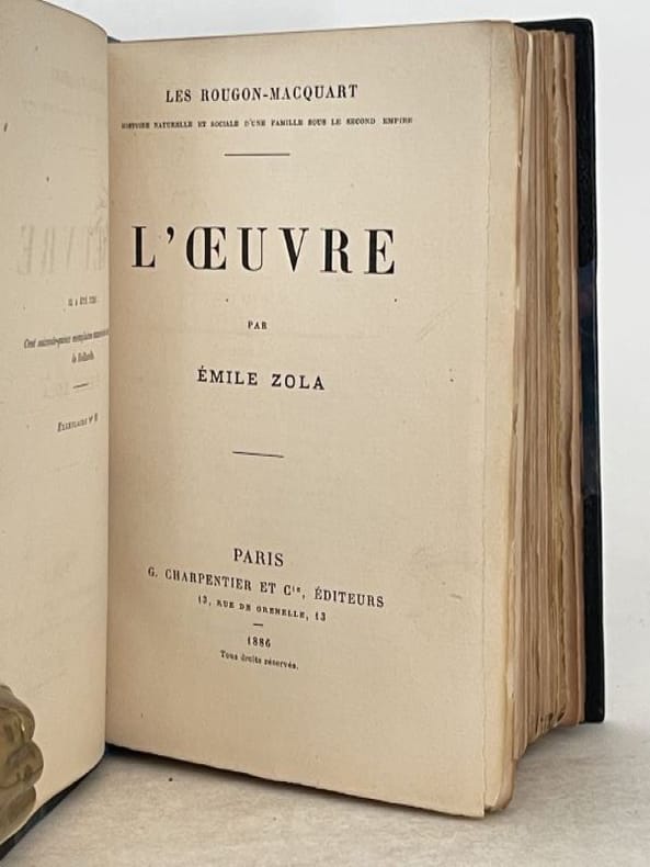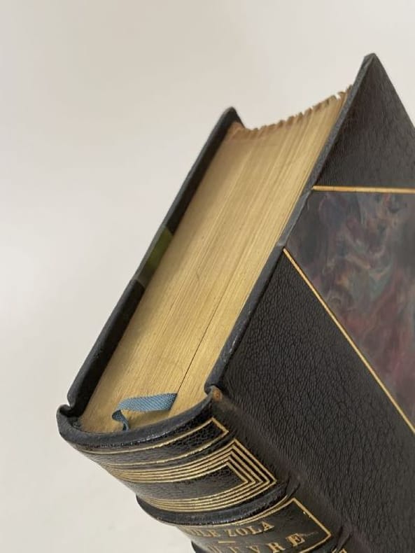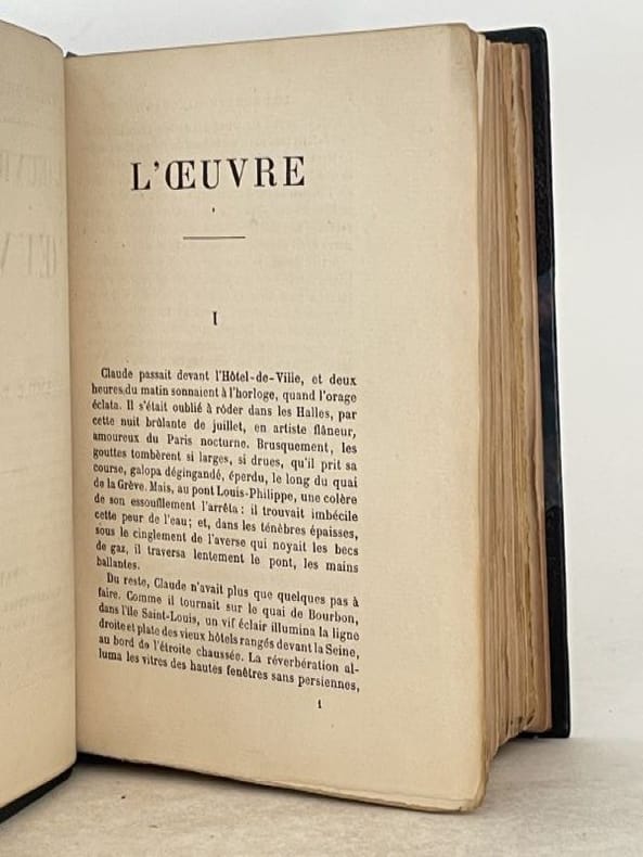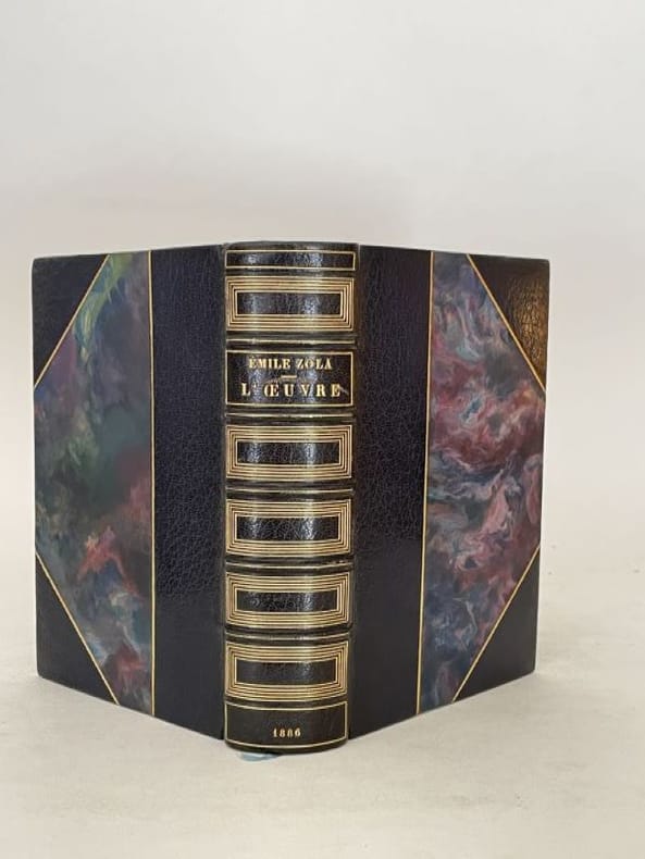 Paris Charpentier 1886 1 vol. Relié in-12, demi-maroquin bleu nuit à coins bordé d'un filet doré, dos à nerfs soulignés d'un filet doré, quintuple filet doré en encadrement des caissons, tête dorée, couvertures et dos conservés, non rogné (Franz), 491 pp. Edition originale. Un des 175 exemplaires numérotés sur Hollande (n°15), seul grand papier avec 10 Japon, dans une fine reliure signée de l'époque (infime griffure au dos).