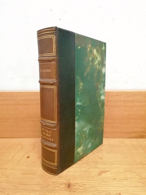 Paris Librairie académique Didier 1869 1 vol. relié in-12, demi-chagrin vert sapin, dos à nerfs, caissons encadrés de filets dorés (reliure postérieure), XII + 496 pp. 15e édition. Professé à la Faculté en 1818, ce cours de philosophie fut suivi par Balzac. Dos passé. Bon exemplaire.