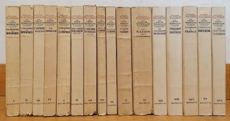 Paris Hachette 1937-1954 16 vol. broché 16 vol. in-8, brochés, pagination multiple. Série complète : I, La jeunesse de Bonaparte. II, L'ascension de Bonaparte. III, De Brumaire à Marengo. IV, Le Consulat. V, L'avènement de l'Empire. VI, Vers l'Empire d'Occident (1806-1807). VII, L'affaire d'Espagne (1807-1809). VIII, L'apogée de l'Empire (1809-1810). IX, La crise de l'Empire (1810-1811). X, L'Empire de Napoléon. XI, La Nation sous l'Empereur. XII, La catastrophe de Russie. XIII, L'écroulement du Grand Empire. XIV, La campagne de France. XV, L'interrègne Napoléonien. XVI, Les Cent jours, Waterloo. Quelques couvertures défraîchies, sinon bon ensemble.
