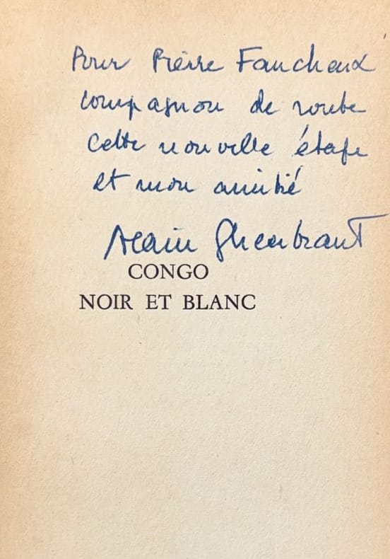 Paris Gallimard 1955 1 vol. broché in-12, broché, 241 pp., 8 planches hors-texte. Exemplaire du service de presse avec ce bel envoi autographe signé : "Pour Pierre Faucheux, compagnon de route, cette nouvelle étape, et mon amitié, Alain Gheerbrant". Trace de mouillure au dos et en bordure du premier plat.