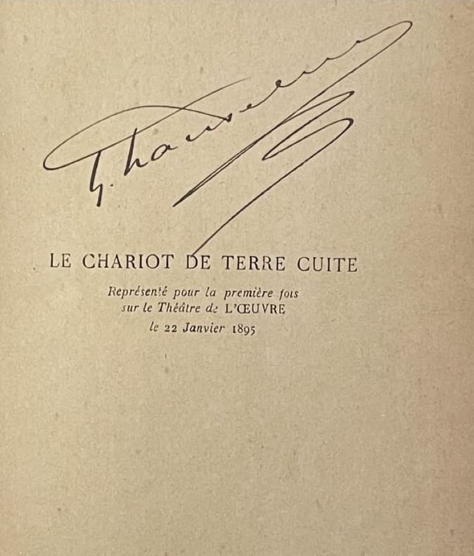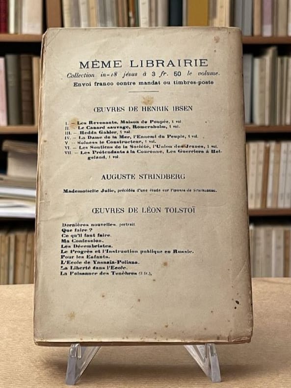 Paris Albert Savine 1895 1 vol. broché in-12, broché, 268 pp. Edition originale recherchée pour la belle couverture lithographiée en couleurs de Toulouse-Lautrec (Wick, 5). Sur cette pièce présentée au Théâtre de l'Oeuvre en 1895 et qui suscita un scandale digne d'Ubu-Roi, on consultera l'érudite et amusante notice de Jean-Paul Morel dans le n° 11 de la revue "Histoires littéraires". Ex-libris manuscrit, la couverture présente deux petits manques de papier en bordure du premier plat de couverture. Rare.
