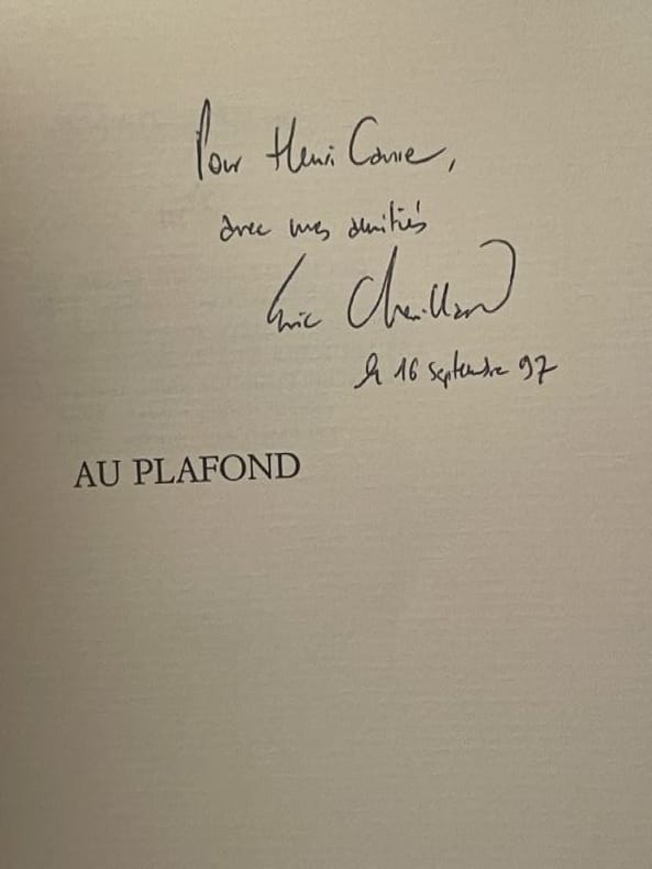 Paris Editions de Minuit 1997 1 vol. broché in-8, broché, non coupé, 156 pp. Edition originale. Un des 37 exemplaires numérotés sur vergé de Vizille (seul grand papier), et parmi ceux-ci l'un des 7 hors commerce (ex. n°VI), avec un envoi autographe signé de l'auteur à Henri Causse, directeur commercial des éditions de Minuit. En parfait état.