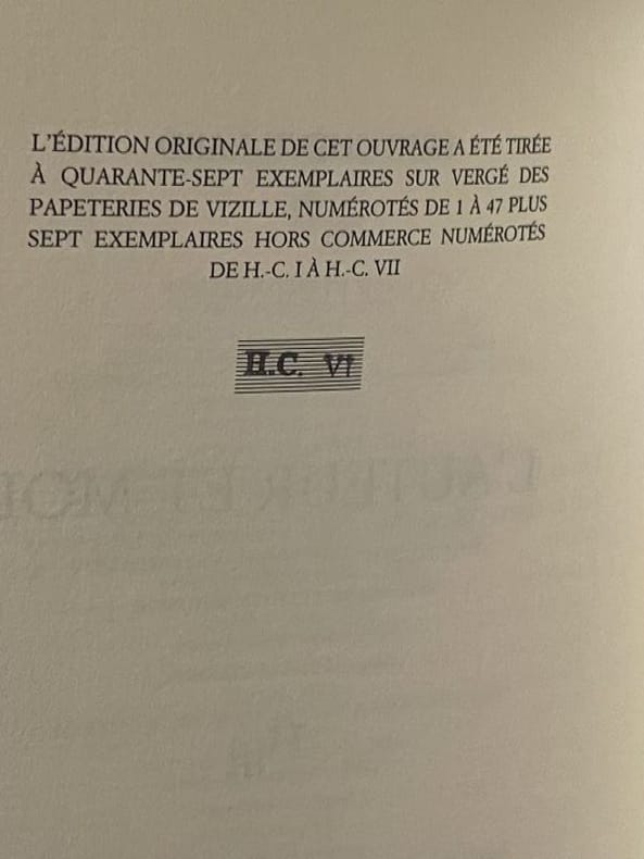 Edition originale. Tirage de tête : un des 47 exemplaires du tirage numéroté sur vergé de Vizille (seul papier) ; plus 7 hors-commerce. 'Pour quelques damnés heureux ou malheureux, la littérature décide de tout. Chaque chose sera vue à travers son prisme et rien ne sera vraiment vécu avant d'être formulé. Ce livre est-il un récit humoristique délirant, une confession autobiographique désarmante, un essai polémique agressif, ou bien plutôt, outrepassant ces catégories qui se télescopent ici, tantôt joyeusement, tantôt brutalement, une mise à l'épreuve de la vie de l'auteur dans le champ de la littérature où il s’est établi au saut du berceau ? Nous y lirons donc un roman bien dans sa manière (un peu trop sans doute), et même deux romans puisqu’un second (l’histoire d’un homme qui suit une fourmi) vient soudain interrompre le premier. Mais nous y lirons aussi les interventions et commentaires de l’auteur, soucieux de garder la main sur sa création et d’élucider ce qui se trame peut-être à son insu dans ses fictions.'' Dos très légèrement ridé. Discrète plissure en marge supérieure gauche du premier plat. Du reste, très belle condition.