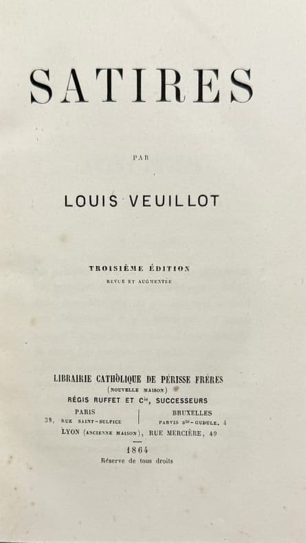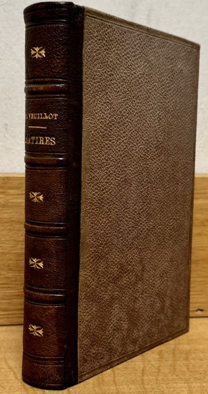Paris Félix Bonnaire, éditeur 1837 in 8 (21,5x13,5) 1 fort volume reliure demi chagrin, dos lisse orné de fers dorés de de style rocaille, 391 pages. Relié à la suite: NOUVELLES SATIRES ( Pot-de-vin, Erostrate ) Paris, Paul Masgana 1840 (VII et 287 pages). Edition originale du recueil de satires constitué de "Pot-de-vin" et "Erostrate". Des rousseurs. Bel exemplaire ( Photographies sur demande / We can send pictures of this book on simple request )