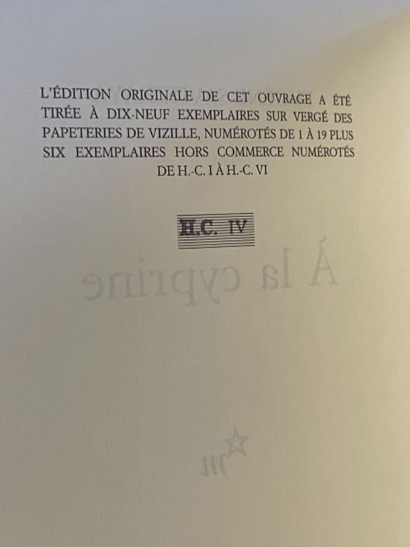 Paris Editions de Minuit 2015 1 vol. broché in-8, broché, non coupé, 90 pp. Edition originale. Un des 25 exemplaires sur vergé de Vizille (seul grand papier), et parmi ceux-ci l'un des 6 hors commerce (ex. n°IV), en parfait état. On joint un poème de la même inspiration, "Symphyse", paru à part sous forme de plaquette in-16 en feuilles tirée à 150 exemplaires sur vergé (Saint Clément, La Cadran ligné, 2015).