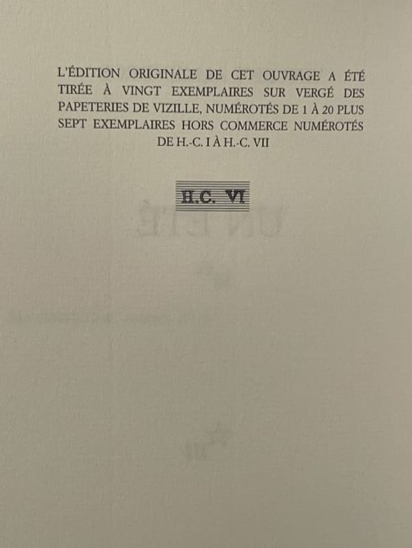 Paris Editions de Minuit 2014 1 vol. broché in-8, broché, non coupé, 94 pp. Edition originale. Deux couples sur un voilier dans la baie de Naples... Un des 27 exemplaires sur vergé de Vizille (seul grand papier), et parmi ceux-ci l'un des 7 hors commerce (ex. n°VI), avec un envoi autographe signé de l'auteur à Henri Causse, directeur commercial des éditions de Minuit. En parfait état.