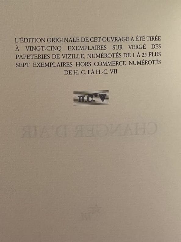 Paris Editions de Minuit 2015 1 vol. broché in-8, broché, non coupé, 171 pp. Edition originale. Un des 32 exemplaires numérotés sur vergé de Vizille (seul grand papier), et parmi ceux-ci un des 7 hors commerce (ex. n°V), avec un bel envoi de l'autrice à Henri Causse, directeur commercial des éditons de Minuit. En parfait état.