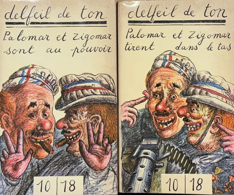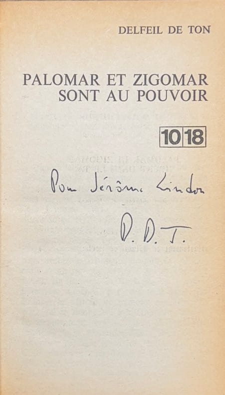 Paris Union Générale d'Editions, coll. "10/18" 1975 2 vol. poche 2 vol. in-12, brochés, couvertures illustrées en couleurs par Topor, 442 + 443 pp. Edition originale de ce recueil des chroniques "Les lundis de Delfeil de Ton", "Le petit coin de la culture" et "Vite, on est pressé", parues dans Charlie-Hebdo en 1974. Envoi de l'auteur à Jérôme Lindon dans le premier volume. Très bon état.