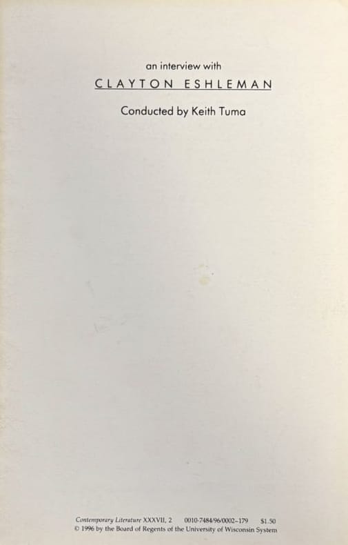 Contemporary Literature XXXVII, 2 1996 1 vol. broché plaquette in-8, agrafée, non paginé. Tiré à part de Contemporary Literature XXXVII, 2. Texte en anglais. Très bon état.