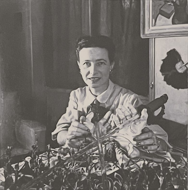[1952] 1 vol. Tirage argentique en noir et blanc avec tampon de la photographe Gisèle Freund au verso, s.d. [1952], 20 x 19 cm. Belle photo de l'écrivaine présentant moulage des mains de Sartre, à rapprocher de celle publiée dans l'album de la Pléiade Simone de Beauvoir (p.151). Dans un élégant cadre au format 43 x 43 cm.