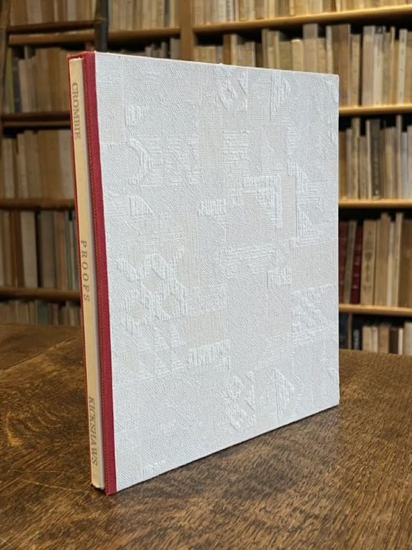 Paris Kickshaws 1991 1 vol. en feuilles in-8, en feuilles, sous chemise et couverture imprimées, étui toilé à motifs blanc souligné d'un liseré rouge, non paginé (36 p.). Superbe plaquette typographique réalisée à partir des chutes de l'ambitieux projet graphique avorté "Sic Transit". Tirage unique à 150 exemplaires numérotés sur papier Hahnemüle, en parfaite condition.