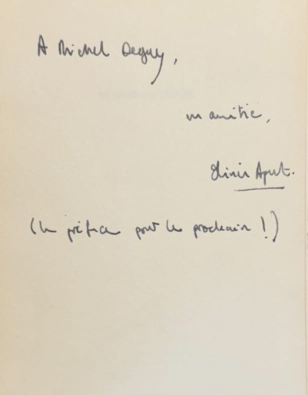 Xonrupt-Longemer Aencrages & Co, coll. "Voix de chants" 1989 1 vol. broché in-8, broché, couverture à rabats, non paginé, illustrations en noir. Edition originale. Un des 300 exemplaires du tirage courant. Envoi autographe signé de l'auteur à un poète et critique. Très bon état, non coupé.