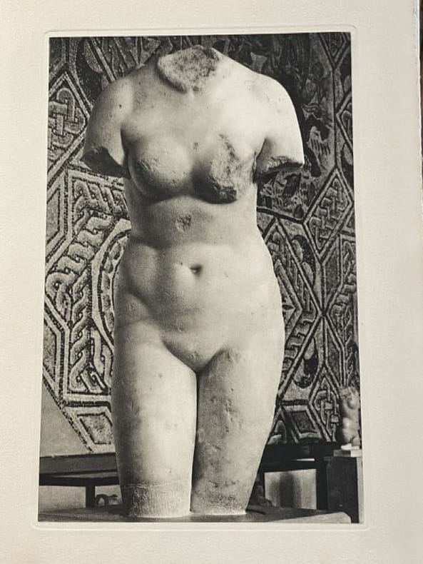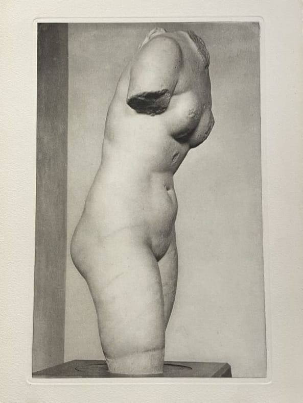 Paris Arts et métiers graphiques 1952 1 vol. broché in-8, en feuilles, sous couverture rempliée, 6 pp. Rare plaquette comprenant un texte de Georges Marçais suivi de 8 belles planches photographiques en héliogravure par Marcel Bovis montrant sous toutes ses formes la Vénus de Cherchel du Département des antiquités grecques du Louvre. Tirage limité à 1000 exemplaires numérotés sur vélin d'Arches. En bonne condition.