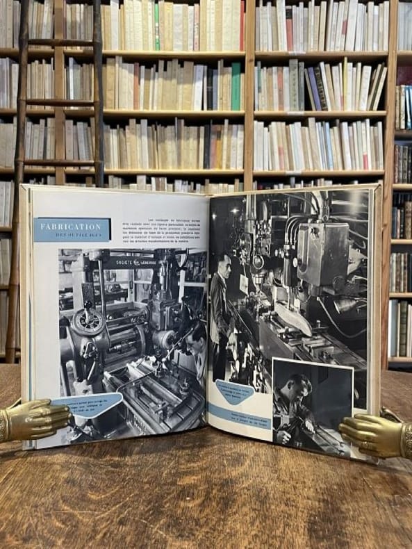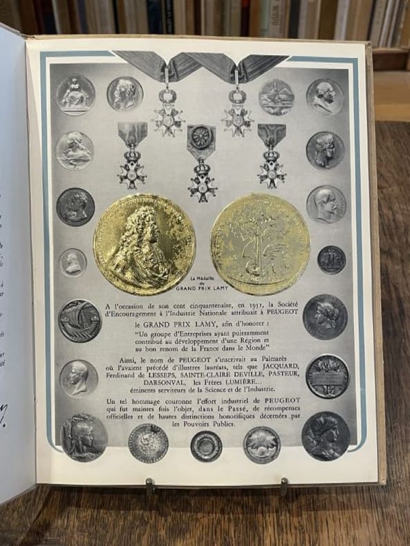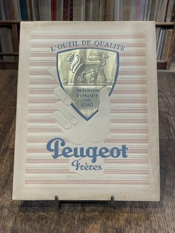Paris Peugeot et Cie 1953 1 vol. broché in-4, broché, couverture rempliée, premier plat gaufré de l'écusson au lion doré, non paginé (80 p.). Bel album publicitaire de style moderniste avec un graphisme et un façonnage soigné, une préface de Mac Orlan et un important reportage photographique entièrement réalisé par Doisneau. Bien complet de la planche du Grand Prix Lamy décorée de 2 médailles dorées, ainsi que de la double planche illustrée en couleurs (Guy Mandéry, Robert Doisneau, un photographe et ses livres, p. 132). Couverture très légèrement roussie, sinon bonne condition.