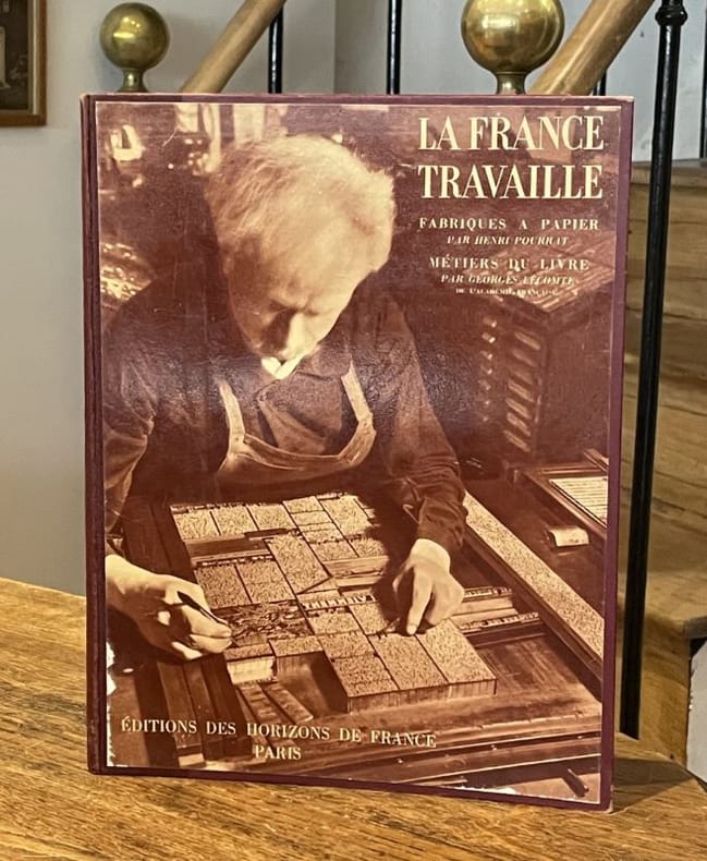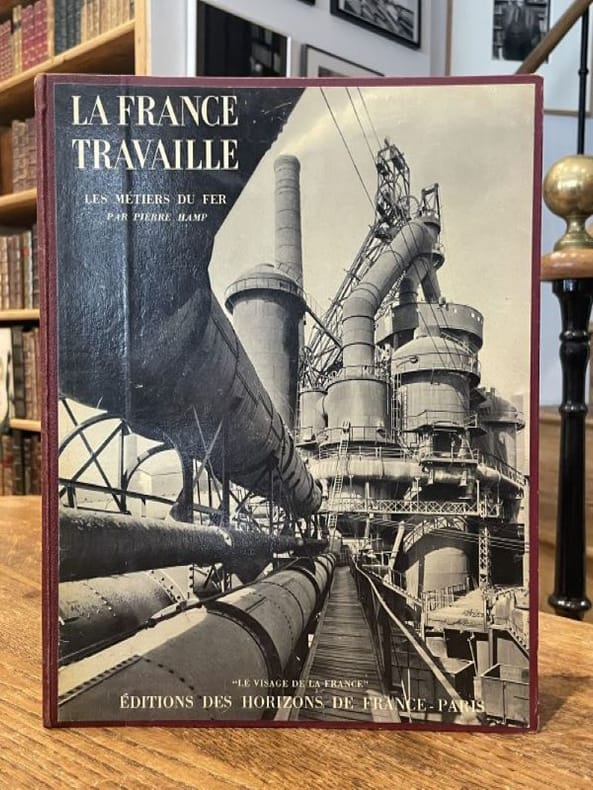 Préface de Paul Valéry. Note(s) : On a joint à la fin de chaque volume les couvertures illustrées des divers fascicules les composant......Edition originale et premier tirage.......Album qui propose un tour de France des métiers et des industries. Les textes sont principalement signés du journaliste socialiste Henri-Louis Bourrilon, dit Pierre Hamp (1876-1962), qui s'était fait une spécialité de la description et de l'exaltation de la vie professionnelle et ouvrière, mais aussi par des plumes plus bourgeoises comme Lucien Fabre, Henri Pourrat, Maurice Constantin-Weyer, Jean Prévost, André Warnod, Charles Silvestre, Georges Lecomte. Quant aux métiers présentés, ils couvrent tous les secteurs du primaire et du secondaire : la mine, les métiers de la mer (pêcheurs, mariniers, gardiens de phares), les métiers du rail, les paysans, les vignerons, les forestiers et bûcherons, les tisserands, les artisans d'art, les métiers du livre, etc. L'abondante iconographie fait du recueil un témoignage actuellement précieux sur un univers qui a disparu ou qui a subi de profondes mutations techniques ou sociales. AU SOMMAIRE : Tome 1 : Mineurs, Métiers du fer, Mariniers, Gens de mer, phares, Le rail, L'automobile, la route, L'avion, les chemins de fer, énergie - Tome 2 : La vie paysanne, Vignerons, Marchés, Forestiers et bucherons, Fleurs et parfums, Tisserands, Canuts, Tapisseries, Couture et mode, Verriers et céramistes, Le batiment, Fabriques à papier, Métiers du livre, Journaux, Bibliothèques- La plupart des photographies sont de François KOLLAR - Reportage photographique sur le monde du travail en France, commandé par les éditions Horizons de France. Pendant plus de trois ans, François Kollar sillonna la France avec son matériel photographique. Il en ramena un ensemble de documents exceptionnels sur la technologie et les hommes de son époque. La France travaille est ainsi la première et la seule enquête photographique d'envergure, jamais tentée en France, sur le travail, et de surcroît réalisée par un seul homme, pendant une période bien circonscrite ......BEL EXEMPLAIRE....en trés bon état (very good condition). parfait état
