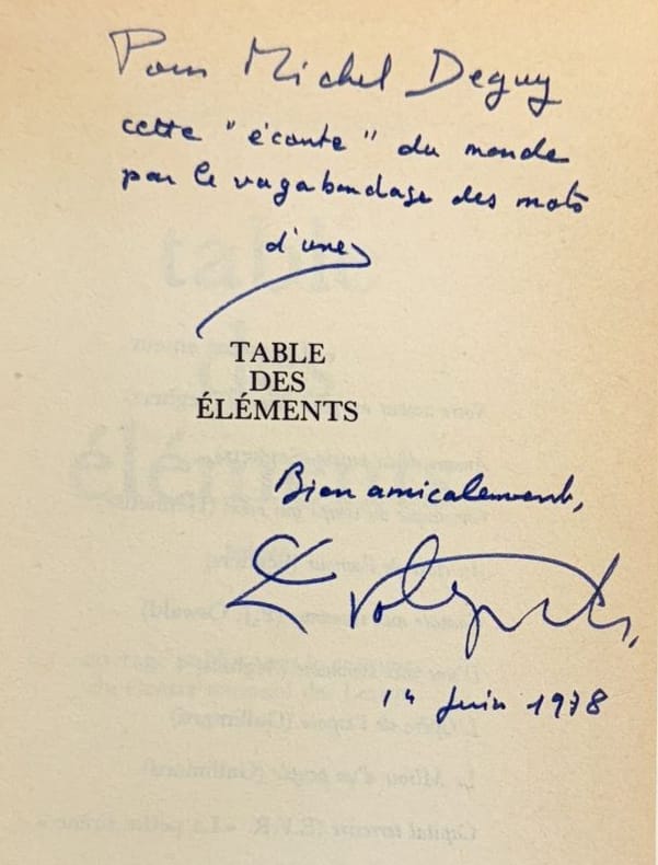 Paris Belfond 1978 1 vol. broché in-8, broché, 186 pp., musique notée. Edition originale sans grand papier. Envoi autographe signé de l'auteur à un poète et critique. Bon exemplaire.