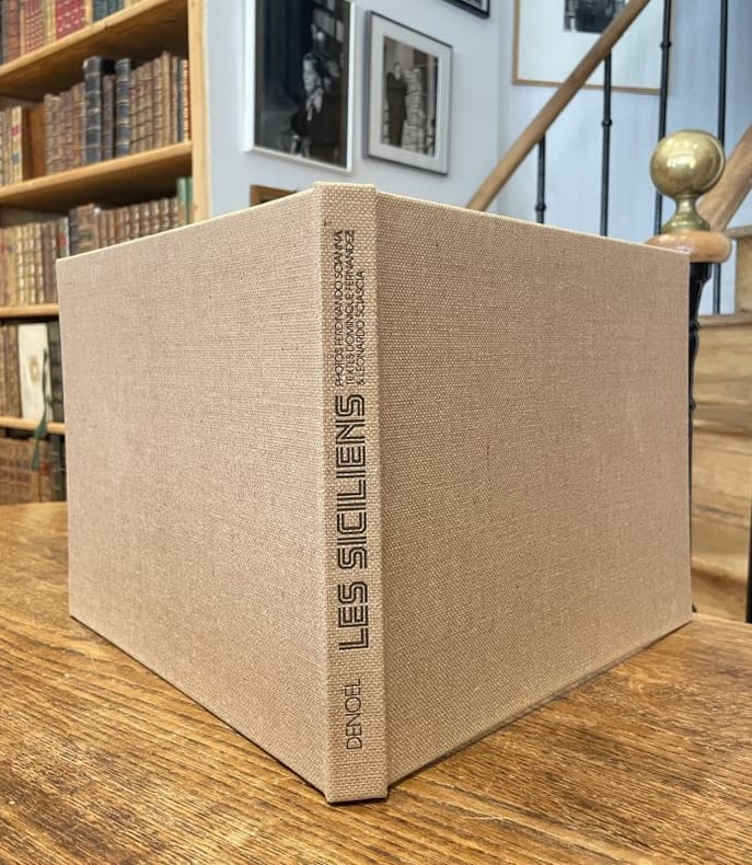 Paris Denoël 1977 1 vol. relié in-4 oblong, cartonnage toilé beige de l'éditeur, jaquette, XXII + 168 pp. Premier tirage des belles photographies par Ferdinando Scianna imprimées en héliogravure, avec les textes de Dominique Fernandez et Leonardo Sciascia. En excellente condition.